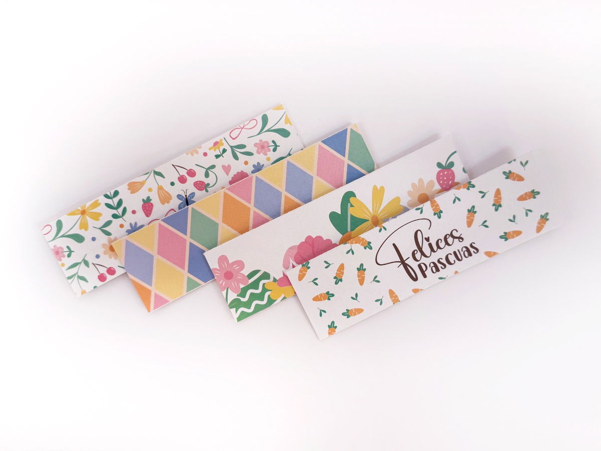 Bandas decorativas impresas surtidas para cerrar bolsitas con mini huevitos, cookies o chocolate