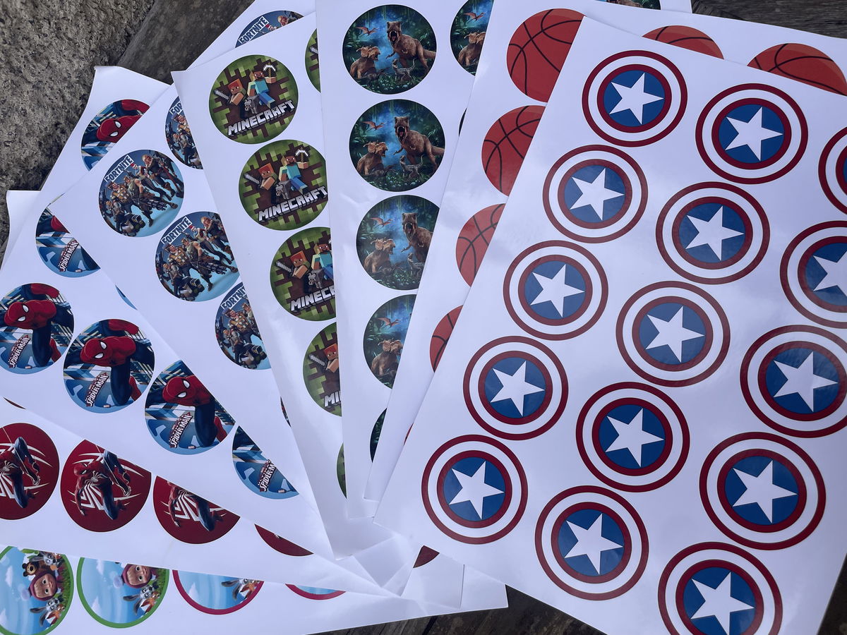 Plancha de stickers adhesivas para cerrar o decorar bolsitas de cumple
