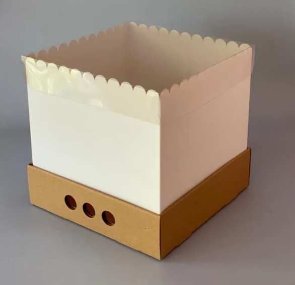 Base kraft super reforzada + laterales blancos + tapa de PVC transparente