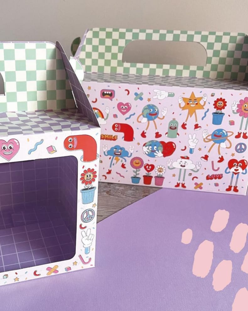 Realizada en cartulina estampada con diseño juvenil