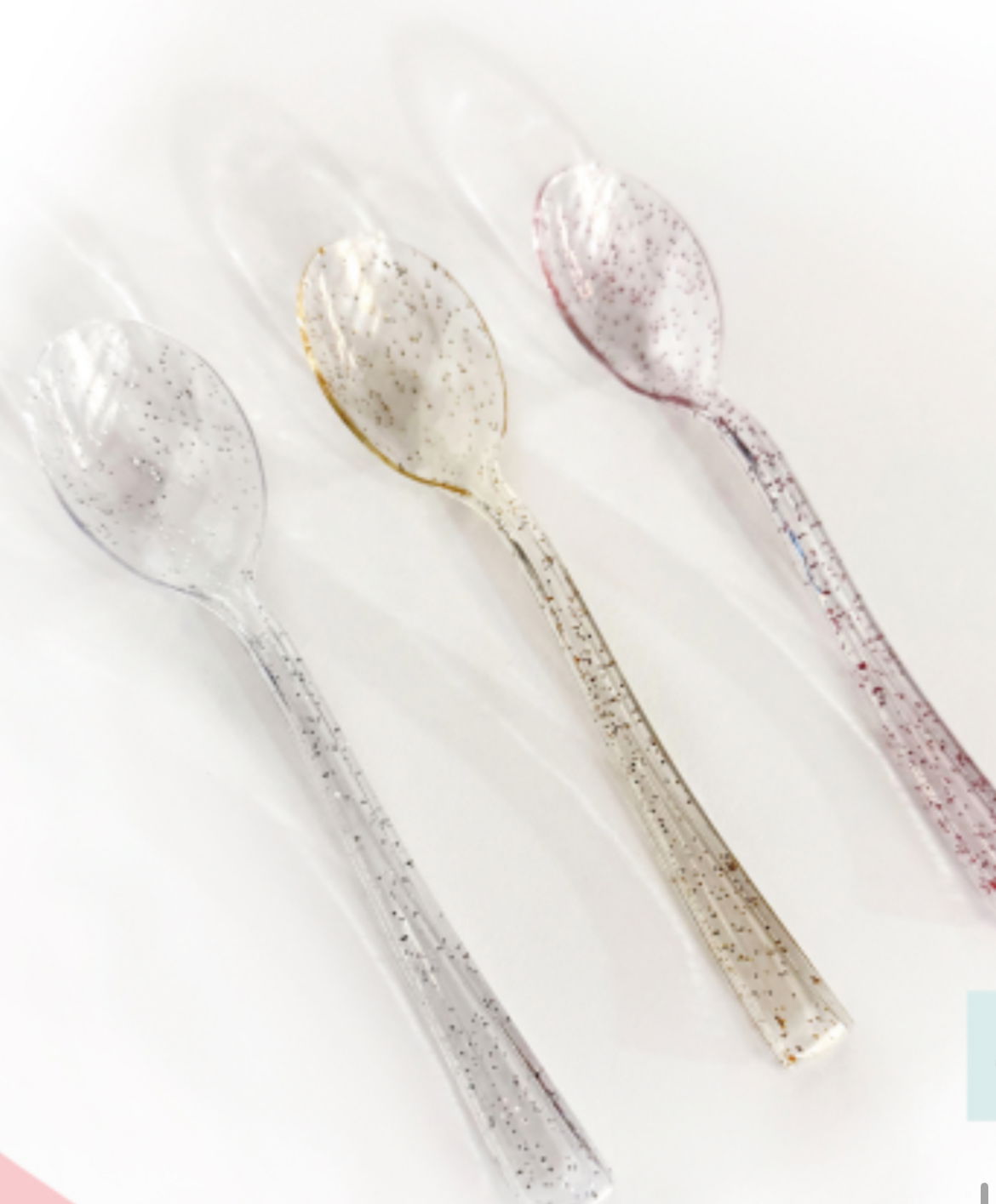 Cuchara plástica con glitter (detalles en metaliazado)