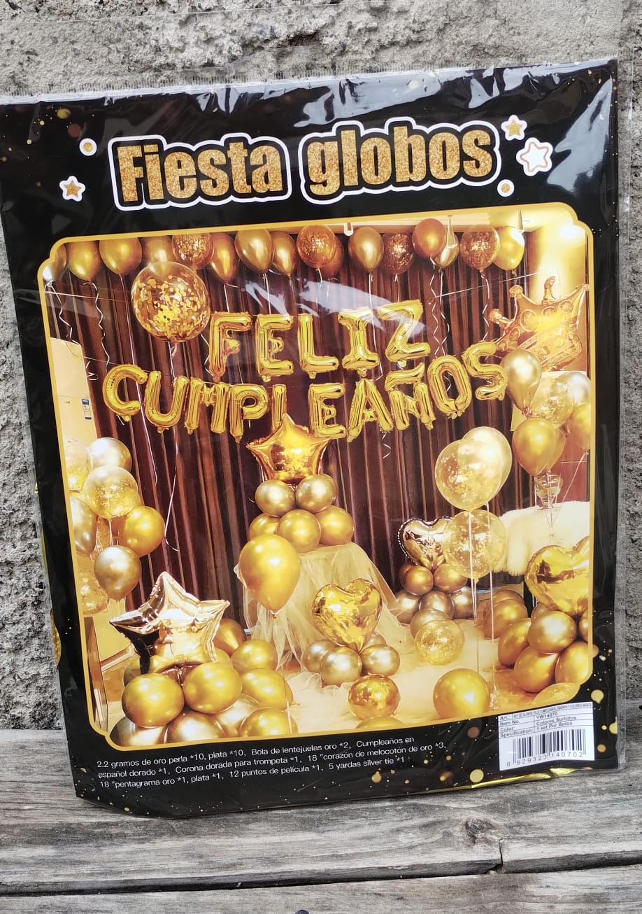 Contiene globos, globos foil, cinta para arco y/o banderines