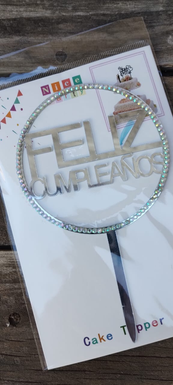 Topper Acrílico Strass Plateado
