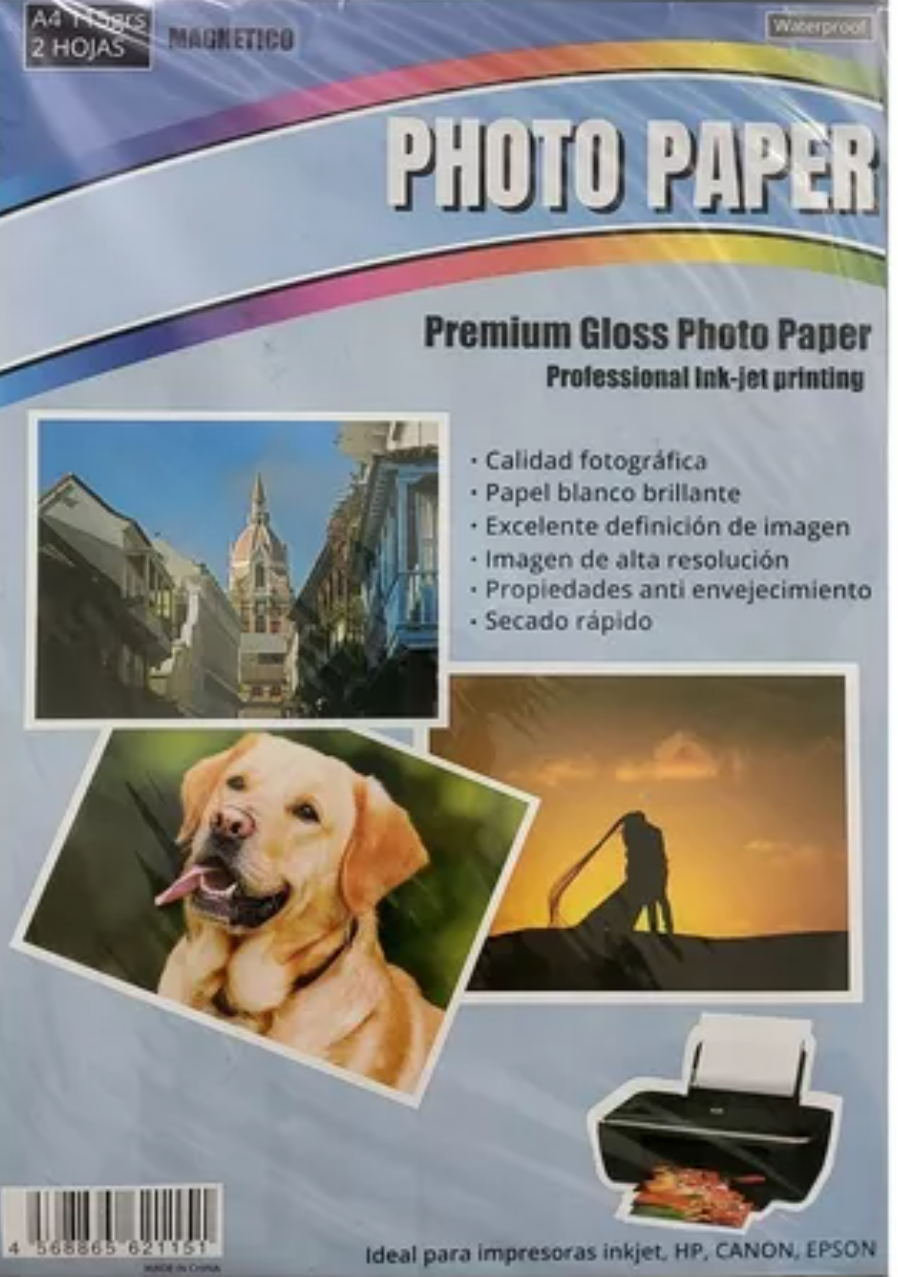 Papel Fotográfico con Imán A4 - 115g Magnético- 2 hojas